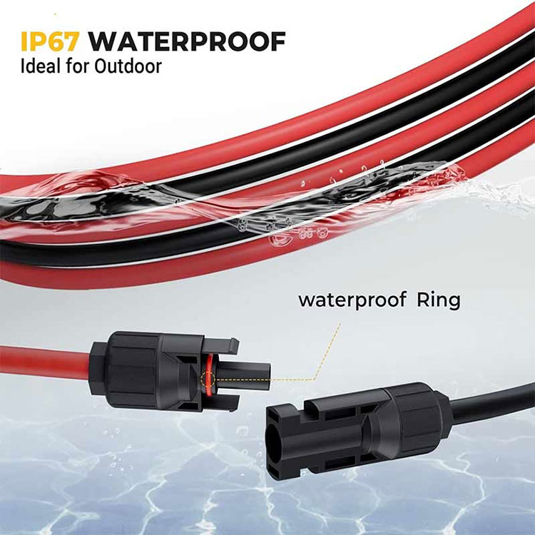 עמיד למים ועמיד: טבעת עמידה למים IP67 על המחבר הסולארי הזכרי מושלמת לאיטום מים ואבק כדי למנוע קורוזיה. המחבר יציב ובטוח עם המנעול המובנה, העמיד בחוץ. כבל ה-PV נועד לעמוד בחום וקור קיצוניים.