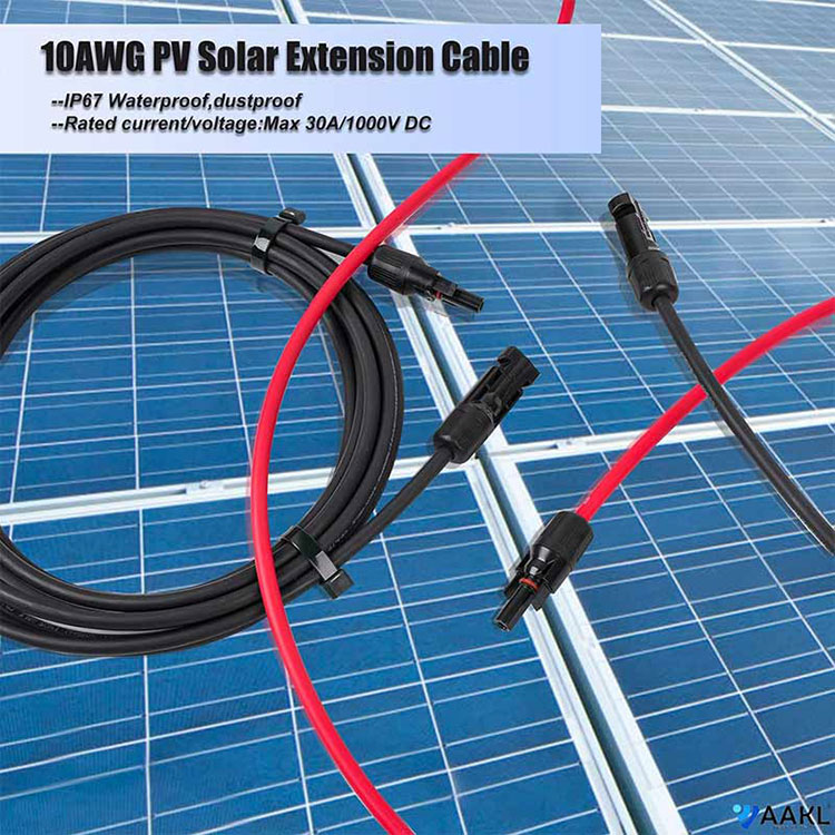 מוסמך: כבל מאריך לפאנל סולארי מוסמך, חוט סולארי 10AWG, תמיכה מקסימלית במתח 1000VDC, זרם DC 30A, הספק מרבי של פאנל סולארי 20,000W, מתאים לכל פרויקטי ייצור חשמל פוטו-וולטאיים סולאריים ביתיים.
